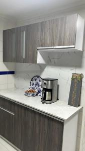The spacious apartment at CASA DE LA PLAYA EN LA CIUDAD DE SANTA MARTA includes 3 bedrooms, a living room, a well-equipped kitchen, and a terrace. A flat-screen TV is available.