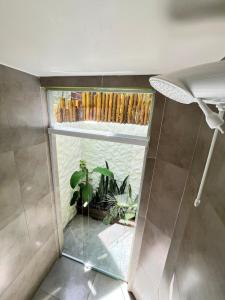 Klimatizovaný apartmán v Casa dendê má 1 ložnici, plně vybavenou kuchyň a terasu s výhledem do zahrady.