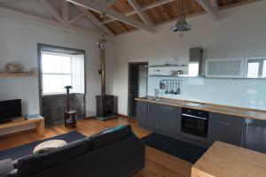 The house’s living room comes with a flat-screen TV, fireplace and sofas. There is a full kitchen with a dishwasher as well as a private bathroom.
