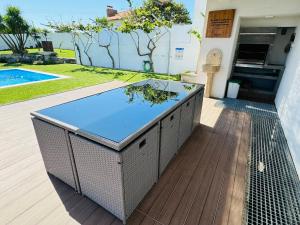 This holiday home's special features are the private pool and the fireplace. Featuring a private entrance, this air-conditioned holiday home consists of 1 living room, 2 separate bedrooms and 1 bathroom with a shower and a hairdryer. Guests will find a stovetop, a refrigerator, a dishwasher and kitchenware in the well-equipped kitchen. The holiday home also offers a barbecue. Boasting a balcony with sea views, this holiday home also provides a washing machine and a flat-screen TV with cable channels. The unit offers 3 beds.