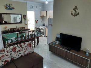 В доме для отпуска Casa do Guina Itapoá SC есть 3 спальни. Среди других удобств - гостиная, в которой есть телевизор с плоским экраном, кухня с холодильником и духовкой, а также несколько ванных комнат (2) с душем.