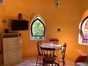 This holiday home is equipped with 1 bedroom, a kitchen with an oven and a microwave, a flat-screen TV, a seating area and 1 bathroom equipped with a shower. Towels and bed linen are provided in the holiday home at Casa Domos inteira, Privacidade, Pátio ideal para Pets. Casa Domos inteira, Privacidade, Pátio ideal para Pets includes an outdoor dining area.