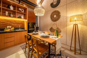 Tato vila má 2 ložnice, jídelní kout, TV a kuchyň s mikrovlnnou troubou. Vila Casa Estrella - Luxe in Ubud má pro hosty připraveny ručníky a ložní prádlo.