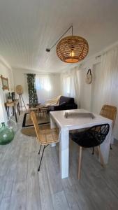 Boasting a private entrance, this air-conditioned holiday home includes 1 living room, 1 separate bedroom and 1 bathroom with a bath. Guests will find a stovetop, a refrigerator, a dishwasher and kitchenware in the kitchen. The holiday home also features a barbecue. Featuring a terrace with garden views, this holiday home also offers a washing machine and a flat-screen TV with satellite channels. V této ubytovací jednotce se nachází 2 postele.