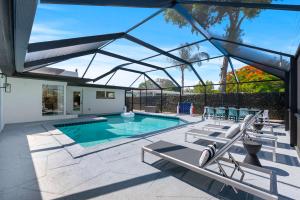 This holiday home features a private pool. Boasting a private entrance, this air-conditioned holiday home features 1 living room, 5 separate bedrooms and 3 bathrooms with a walk-in shower and a bath. Guests can make meals in the kitchen that has a stovetop, a refrigerator, a dishwasher and kitchenware. The spacious holiday home features a flat-screen TV with streaming services, a washing machine, a tea and coffee maker, tumble dryer as well as garden views. The unit has 11 beds.