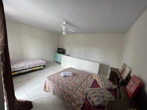W domu wakacyjnym do dyspozycji gości przygotowano balkon, sypialnię (1), salon oraz kuchnię z doskonałym wyposażeniem, w tym minibarem. Wyposażenie obiektu Casa iguaba com área de lazer obejmuje telewizor z płaskim ekranem.