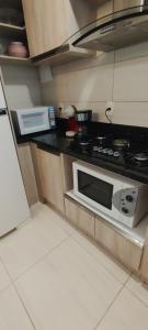 This apartment has 2 bedrooms, a fully-equipped kitchen and a living room with a TV.