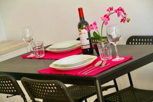 This apartment's special feature is the private pool. This apartment comprises 1 living room, 1 separate bedroom and 1 bathroom with a bath or a shower and a hairdryer. Meals can be prepared in the kitchen, which is equipped with a refrigerator, kitchenware, a microwave and a tea and coffee maker. Featuring a terrace with garden views, this apartment also provides a washing machine and a flat-screen TV with cable channels. The unit offers 2 beds.