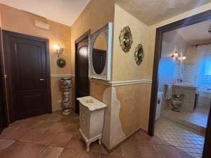 Tento apartmán s klimatizací má 2 ložnice, 2 koupelny s fénem, posezení a obývací prostor. Koupelna v ubytování Casa Luce je zařízena vanou, sprchou a bidetem.