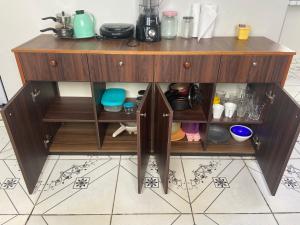 Questo appartamento con aria condizionata comprende 1 camera da letto, TV a schermo piatto, zona pranzo e cucina con frigorifero e forno. Presso Casa mobiliada 2 quartos na cidade nova la dotazione include lenzuola e asciugamani.