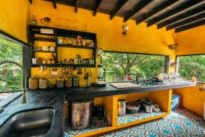 El apartamento Casa Ñi Tayrona consta de 1 dormitorio, sala de estar, cocina equipada con nevera y cafetera, y 1 baño con ducha y artículos de aseo gratis.