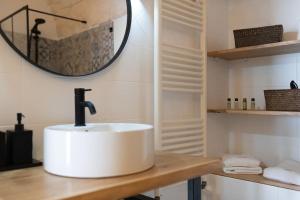 Questa casa vacanze con aria condizionata comprende 1 camera da letto, un soggiorno, una cucina con utensili, frigorifero e macchina da caffè, e 2 bagni con bidet e doccia. La dotazione di questa casa vacanze presso Casa Nido Ostuni Stadthaus mit Meerblick Terrasse include lenzuola e asciugamani.