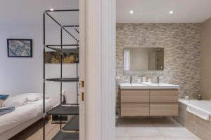 Klimatizovaný apartmán Casa Nonna - 16 mn à pied du Palais, parking privé, clim, ascenseur má 2 ložnice, obývací pokoj, plně vybavenou kuchyň s lednicí a myčkou a 1 koupelnu. V koupelně ubytování ubytování nechybí sprcha ani fén. V ubytování Casa Nonna - 16 mn à pied du Palais, parking privé, clim, ascenseur jsou pro hosty připraveny ručníky a ložní prádlo.