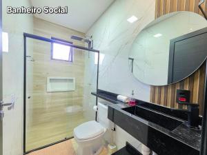 Die Unterkunft Casa nova 3 Quartos 5 min Centro prox Cataratas besticht durch Gartenblick und Übernachtungsmöglichkeiten mit einer Gemeinschaftslounge und einer Terrasse, ungefähr 8,1 km von Casino Iguazu entfernt. Dieses Ferienhaus hat einen eigenen Pool, einen Garten und einen kostenlosen Privatparkplatz.