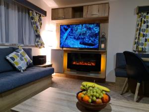 Rooms: 1Guests will have a special experience as this mobile home features a fireplace. Featuring a private entrance, this air-conditioned mobile home is comprised of 1 living room, 2 separate bedrooms and 1 bathroom with a shower and a hairdryer. The well-fitted kitchen features a stovetop, a refrigerator, kitchenware and an oven. Boasting a terrace, this mobile home also offers a seating area, a dining area and a flat-screen TV with streaming services. The unit provides 3 beds.