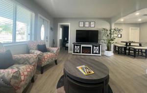 The fireplace is a top feature of this holiday home. Guests will find a stovetop, a refrigerator, kitchenware and an oven in the well-fitted kitchen. The holiday home also includes a barbecue. The spacious air-conditioned holiday home features a flat-screen TV with streaming services, a washing machine, a private entrance, a tea and coffee maker as well as garden views. The unit has 4 beds.