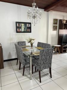 Klimatizovaný prázdninový dům v Casa para COP 30 má 2 ložnice, TV s plochou obrazovkou, jídelní kout, kuchyň s lednicí a obývací prostor.