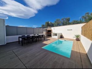 This holiday home's standout feature is the private pool. Boasting a private entrance, this spacious holiday home also includes 4 bedrooms, a seating area and 3 bathrooms with a bath and a shower. Guests will find a refrigerator, a dishwasher, kitchenware and an oven in the kitchen. The holiday home also features a barbecue. The air-conditioned holiday home offers a flat-screen TV, a washing machine, a tea and coffee maker, a dining area as well as pool views. The unit has 4 beds.