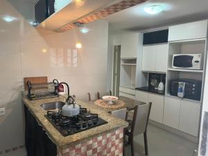 Prázdninový dům Casa 1 quarto, 5 min da beira mar norte má 1 ložnici, TV s plochou obrazovkou a kuchyň.