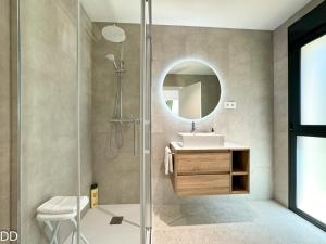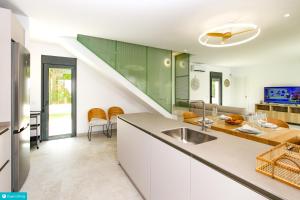 Zimmer: 1Featuring a private entrance, this air-conditioned holiday home consists of 1 living room, 3 separate bedrooms and 3 bathrooms with a shower and a bidet. The holiday home's kitchen, which features kitchenware, is available for cooking and storing food. The spacious holiday home provides a washing machine, a seating area, a wardrobe as well as a terrace with garden views. The unit offers 3 beds.