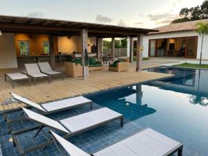 Casa Taipa Trancoso - 4 suítes, 8 pessoas, com café da manhã incluso está en Trancoso, a 2,9 km de Plaza Quadrado y a 31 km de Parque ecológico de Arraial d'Ajuda, y ofrece alojamiento con wifi gratis, aire acondicionado, piscina al aire libre y jardín. Este alojamiento con vistas al jardín en Casa Taipa Trancoso - 4 suítes, 8 pessoas, com café da manhã incluso dispone de balcón.