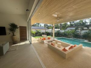 The private pool is the standout feature of this villa. Boasting 3 bedrooms, this spacious villa has 3 bathrooms with a shower, a seating area and terrace where you can relax. Guests can make meals in the kitchen that features a stovetop, a refrigerator, a dishwasher and kitchenware. The air-conditioned villa features a flat-screen TV, a coffee machine, a dining area, a high chair for children as well as garden views. V této ubytovací jednotce je k dispozici 3 postele.