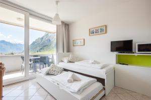 Featuring a private entrance, this apartment comprises 1 living room, 1 separate bedroom and 1 bathroom with a shower and a bidet. Guests will find a stovetop, a refrigerator, kitchenware and a microwave in the well-fitted kitchen. The apartment also provides guests with a barbecue. Boasting a terrace with lake views, this apartment also provides a washing machine and a flat-screen TV. V této ubytovací jednotce je k dispozici 3 postele.
