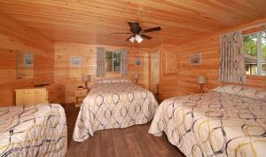 This cottage with a pine interior features a fully equipped kitchen, cable TV and DVD player. It includes a seating area with sofa bed and a queen bed in the bedroom.