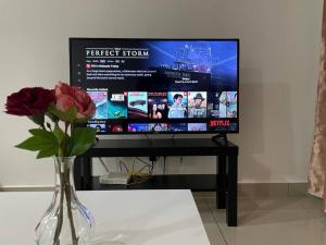 The studio includes a private bathroom equipped with a bidet. The studio's kitchen, which features a refrigerator and a microwave, is available for cooking and storing food. The spacious studio provides air conditioning, a washing machine, a dining area, as well as a flat-screen TV with streaming services. The unit offers 1 bed.