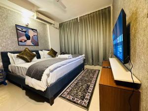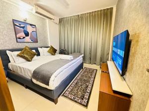 This luxurious apartment features a pool with a view, a hot tub and a sauna. Guests will find a stovetop, a refrigerator, a dishwasher and kitchenware in the kitchen. The apartment also offers a barbecue. The spacious air-conditioned apartment provides a flat-screen TV with cable channels, a washing machine, a private entrance, soundproof walls as well as garden views. The unit offers 3 beds.