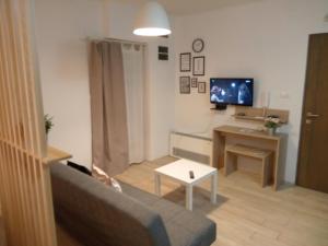 This apartment consists of 1 living room, 1 separate bedroom and 1 bathroom with a walk-in shower and free toiletries. The apartment's kitchen, which features a stovetop and a refrigerator, is available for cooking and storing food. The apartment provides air conditioning, a washing machine, an electric kettle as well as a terrace with garden views. The unit offers 2 beds.