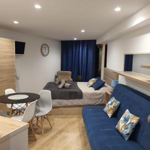 Zur Einrichtung des Center Marina view Purple Studio gehören ein Schlafzimmer, ein Flachbild-TV und eine Küche.