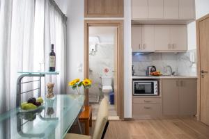 Le camere dispongono di un impianto di aria condizionata, un frigorifero, un forno e una macchina da caffè, oltre a bidet, set di cortesia e scrivania. Dotate di un bagno privato con doccia e asciugacapelli, le camere di questo hotel comprendono anche il WiFi gratuito. Presso Center Studio Heraklion A2, tutte le camere sono dotate di lenzuola e asciugamani.
