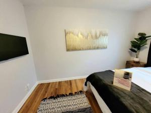 Dieses Ferienhaus im Centrally Located, Black & White Charmer Sleeps 10 bietet 4 Schlafzimmer, eine Küche mit Kühlschrank und Spülmaschine, einen Flachbild-TV, einen Sitzbereich sowie 2 Bäder mit Dusche. In diesem Ferienhaus werden Handtücher und Bettwäsche angeboten.