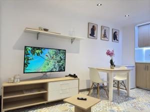 The pool with a view is a top feature of this apartment. This air-conditioned apartment comes with 1 living room, 1 separate bedroom and 1 bathroom with a shower. Guests can make meals in the kitchen that features a stovetop, a refrigerator, an oven and a microwave. The apartment has tiled floors, a seating area with a flat-screen TV, a washing machine, a tea and coffee maker, as well as a dining area. V této ubytovací jednotce se nachází 2 postele.