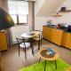 The apartment features 1 bedroom, 1 bathroom, bed linen, towels, a flat-screen TV, a fully equipped kitchen, and a balcony with garden views.
