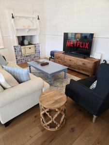 This holiday home's special feature is the fireplace. Featuring a private entrance, this air-conditioned holiday home consists of 1 living room, 2 separate bedrooms and 2 bathrooms with a bath and a shower. The fully equipped kitchen features a stovetop, a refrigerator, a dishwasher and kitchenware. The spacious holiday home provides a flat-screen TV with streaming services, a washing machine, a tea and coffee maker, a dining area as well as garden views. The unit offers 2 beds.
