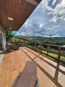 The holiday home is fitted with 1 bedroom, 1 bathroom, bed linen, towels, a flat-screen TV with streaming services, a dining area, a fully equipped kitchen, and a terrace with mountain views. Guests at the property can enjoy garden views from the patio, which is furnished with outdoor furniture. Chalé Acima das nuvens 2 is allergy-free and non-smoking.