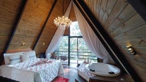 Boasting a private entrance, this chalet features 1 living room, 1 separate bedroom and 1 bathroom with a walk-in shower and a hairdryer. Guests will find a stovetop, a refrigerator, kitchenware and a microwave in the well-fitted kitchen. The chalet also comes with a barbecue. The unit has soundproof walls, garden views, a terrace and wine/champagne is offered for guests. V této ubytovací jednotce se nachází 1 postel.
