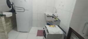 Klimatizovaný apartmán v Chalé Encanto do Mar 10 má 1 ložnici, 1 koupelnu a plně vybavenou kuchyň s lednicí a varnou deskou. Apartmán má také koupelnu.