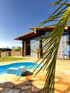 Cette maison de vacances avec climatisation se compose de 1 chambre, d'un salon, d'une cuisine entièrement équipée avec un réfrigérateur, ainsi que de 1 salle de bains avec une douche et des articles de toilette gratuits. Chalé Mirante, piscina, cachoeira, lago e vista espetacular fournit des serviettes et du linge de lit.