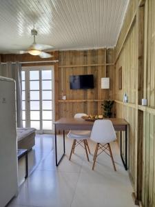 Disposant d’une terrasse et offrant une vue sur la mer, cette maison de vacances comprend 1 chambre, un salon, une télévision à écran plat, une cuisine équipée avec un réfrigérateur et une plaque de cuisson, ainsi que 1 salle de bains avec une douche. Chalé Vila das Conchas - Floripa fournit des serviettes et du linge de lit moyennant un supplément.