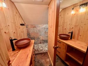 This chalet features a hot tub, spa bath and fireplace. Boasting a private entrance, this air-conditioned chalet includes 1 living room, 2 separate bedrooms and 2 bathrooms with a shower and a hairdryer. Guests will find a stovetop, a refrigerator, a dishwasher and kitchenware in the well-fitted kitchen. The chalet also features a barbecue. The spacious chalet offers a flat-screen TV with streaming services, a washing machine, a tea and coffee maker, a seating area as well as garden views. V této ubytovací jednotce se nachází 5 postelí.