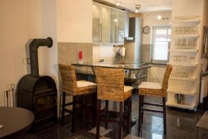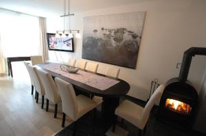 House with a balcony, 4 bedrooms, a kitchen with a dining area, and 3 bathrooms. The house offers a fireplace, satellite TV, and a DVD player.