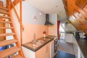 The holiday home includes a private bathroom equipped with a bath or a shower. Guests can make meals in the kitchen that comes with a refrigerator, a dishwasher, an oven and a microwave. The holiday home features sea views.