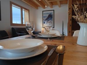 The holiday home with a terrace and garden views has 3 bedrooms, a living room, a flat-screen TV, an equipped kitchen with a dishwasher and an oven, and 1 bathroom with a bath. Towels and bed linen are offered in the holiday home at Chalet familial Vars. Chalet familial Vars includes an outdoor dining area.