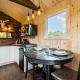 Klimatizovaný prázdninový dům Chalet le Coyote Lac, Micro Ferme, Sentier Du Domaine, Vue Sur Les Monts, Idéal 2 4 Personnes tvoří 1 ložnice, obývací pokoj, plně vybavená kuchyň s lednicí a troubou a 1 koupelnu. Koupelna je vybavená sprchou.