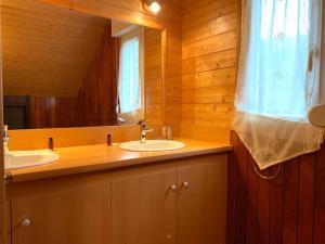 Tato chata má 4 ložnice, kuchyň s kompletním vybavením včetně lednice a myčky nádobí a 2 koupelny s sprchou. Koupelna v ubytování Chalet Myrtille je zařízena vanou a fénem.