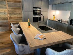 The spacious chalet with a terrace and mountain views has 6 bedrooms, a living room, a flat-screen TV, an equipped kitchen with a dishwasher and an oven, and 6 bathrooms with a walk-in shower. Parquet floors, a fireplace, and a peaceful vibe enhance the ambience of the room at the property. Chalet Neuf du Pape includes an outdoor dining area.