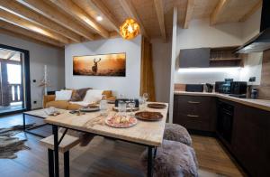 The chalet features 3 bedrooms, 2 bathrooms and a kitchen. The chalet's kitchen is available for cooking and storing food. This chalet provides heating, a flat-screen TV and a terrace. The unit offers 5 beds.